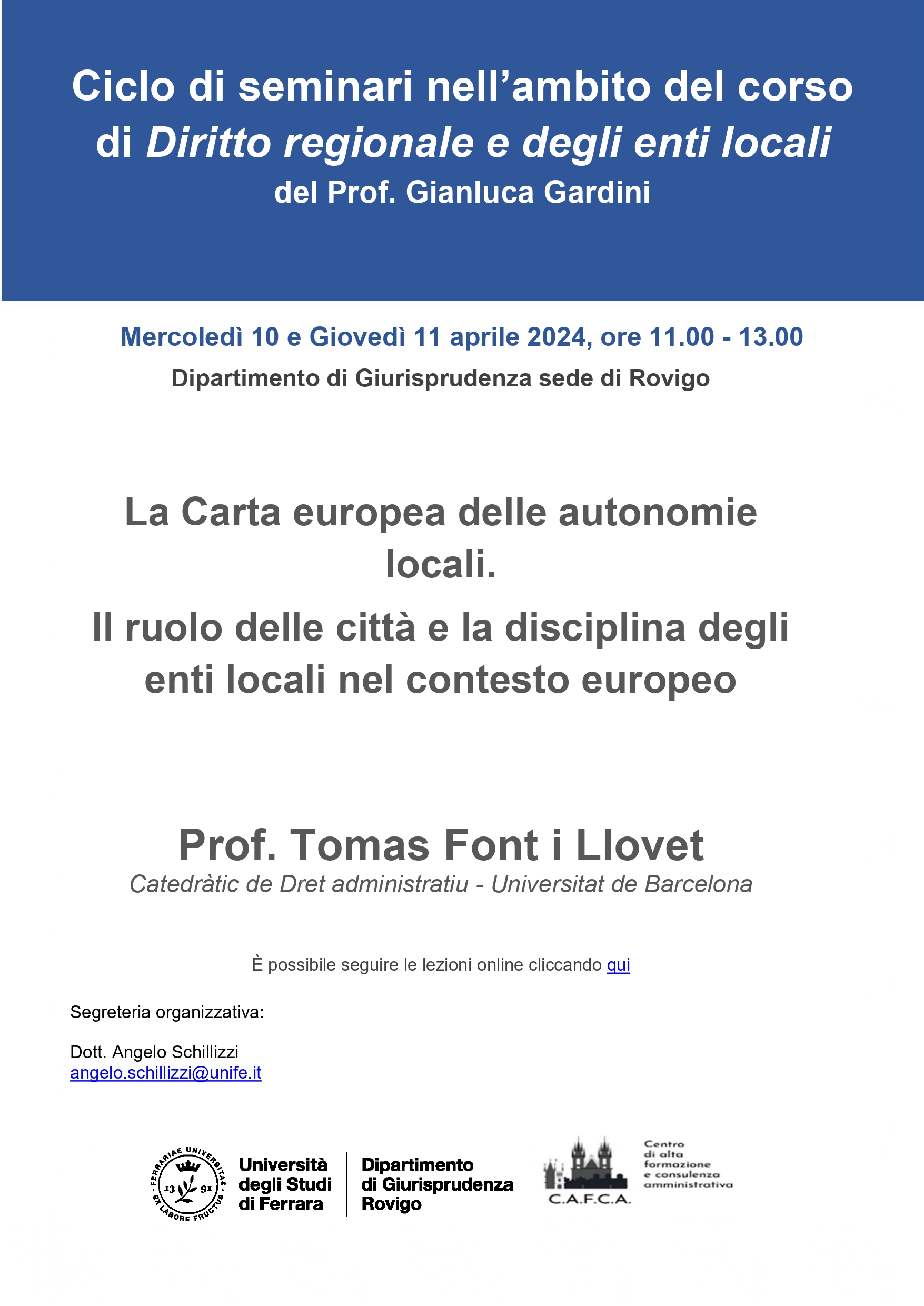 Ciclo di seminari nell’ambito del corso di Diritto regionale e degli enti locali del Prof. Gianluca Gardini Dipartimento di Giurisprudenza sede di Rovigo Prof. Tomas Font i Llovet